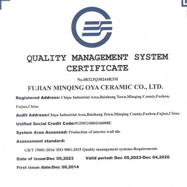 As a professional manufacturer of different types of ceramic, we passed various kind of certificaties for production, quality, management etc.